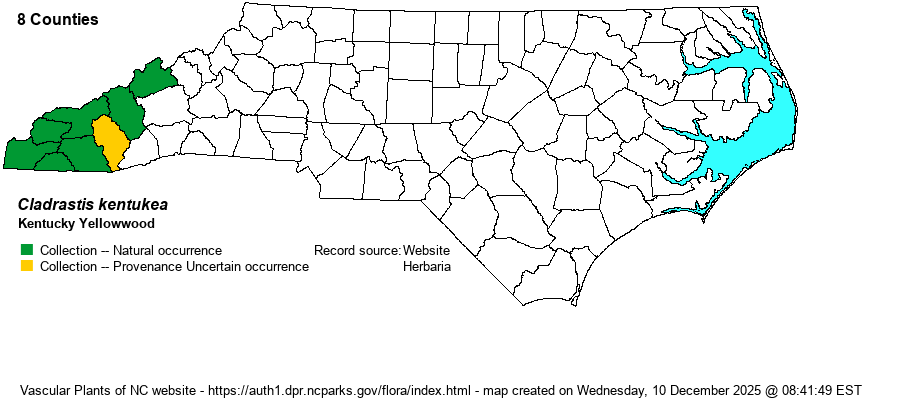 | Taxonomic Comments | This species has usually been named as Cladrastis lutea (e.g., RAB 1968), until recently.