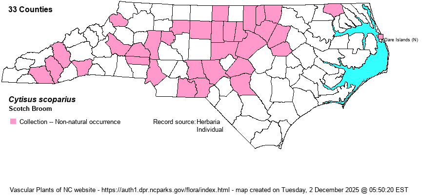 | Distribution | Mostly Piedmont and Sandhills, less frequent in the Mountains and Coastal Plain.