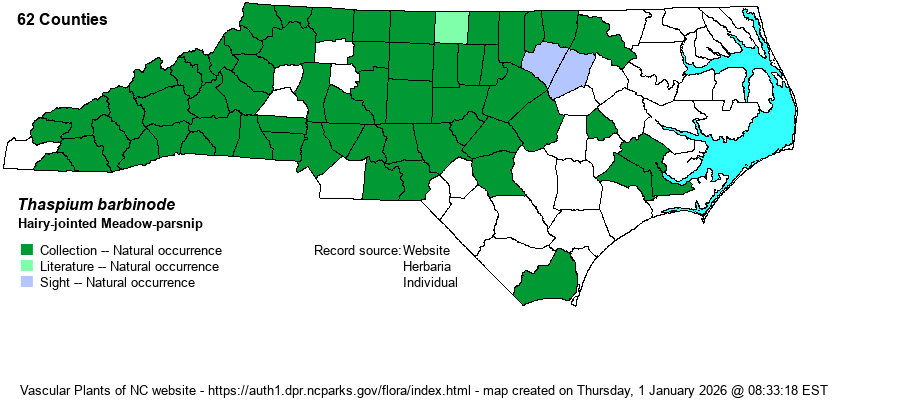 | Other Common Name(s) | None. The predominant common name is quite long and awkward, but there is no better name in use. The Thaspium species as a group are named as "meadow-parsnip". | |