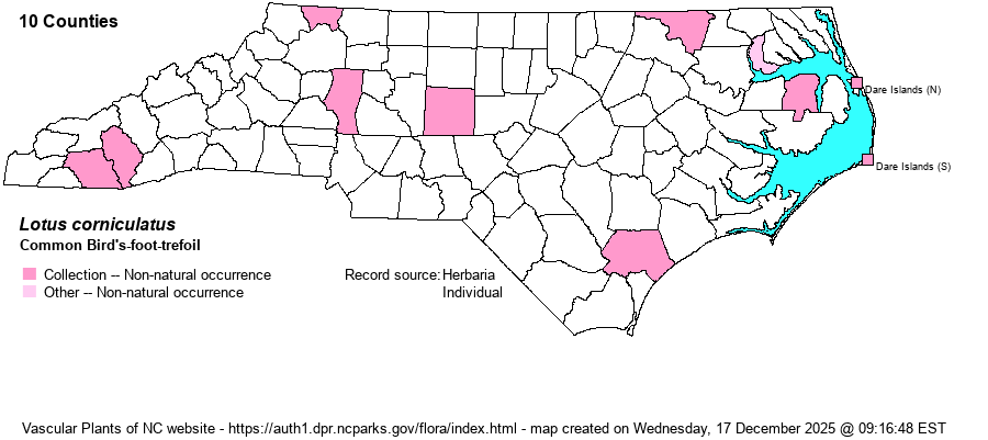 | Distribution | Scattered across the state. First collected from a pasture in Iredell County in 1937. Apparently slow to colonize new sites. It is possible that some NC records may refer to L. tenuis, which by some authors is only varietally distinct; specimens need to be re-examined.