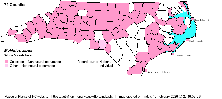 | Melilotus albus | = | Melilotus alba | Gleason and Cronquist (1991) | , orthographic variant | | Melilotus albus | = | Melilotus alba | Fernald (1950) | , orthographic variant | | Melilotus albus | = | Melilotus alba | Gleason (1952) | , orthographic variant | | Melilotus albus | = | Melilotus alba | | , orthographic variant | | Melilotus albus | = | Melilotus alba | Radford, Ahles, and Bell (1968) | , orthographic variant | | Melilotus albus | = | Melilotus alba | Small (1933, 1938) | , orthographic variant | | Melilotus albus | = | Melilotus alba | Vascular Flora of the Southeastern States (Cronquist 1980, Isely 1990) | , orthographic variant | | Melilotus albus | = | Melilotus alba | | , orthographic variant | | Melilotus albus | = | Melilotus alba | Wofford (1989) | , orthographic variant | | Melilotus albus | = | Melilotus alba | Flora of West Virginia | , orthographic variant | | Melilotus albus | < | Melilotus officinalis | | | | Melilotus albus | < | Melilotus officinalis | | | | Source: Weakley's Flora |
