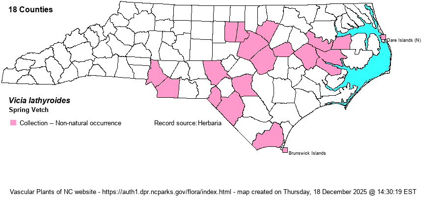 | Distribution | Rather erratically distributed in the Coastal Plain, Sandhills, and lower half of the Piedmont.