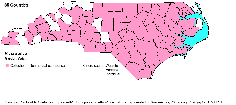 | Taxonomic Comments | The various entities within Garden Vetch have been treated in the past in different ways, as varieties, subspecies, or at least 2 species. We lump them here for convenience. A synonym is V. angustifolia.