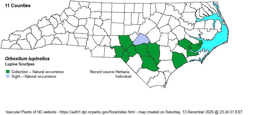 | Taxonomic Comments | Formerly named as Psoralea lupinellus. A few references may have the species spelled as Orbexilum lupinellum.