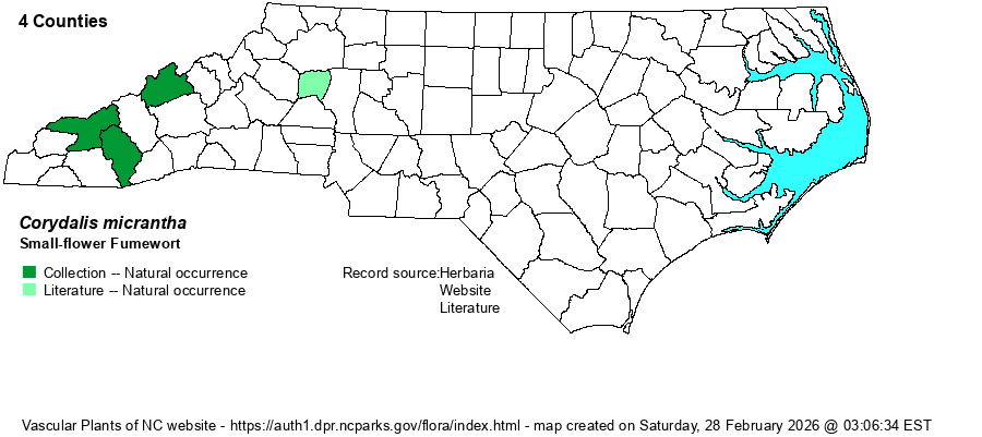 | Distribution | Only known from a few southern and central Mountain counties, plus one in the Brushy Mountains in the western Piedmont (Alexander County).