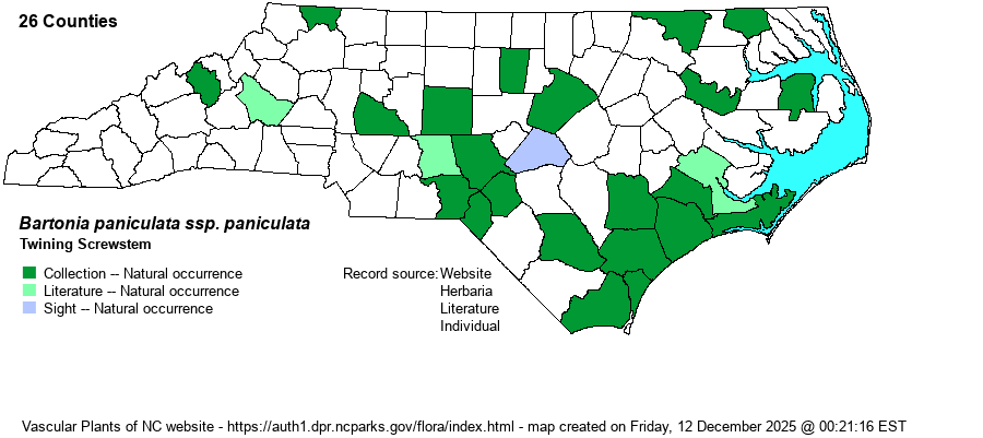 | Bartonia paniculata ssp. paniculata | < | Bartonia paniculata | Wunderlin & Hansen Flora of Florida (3) | |