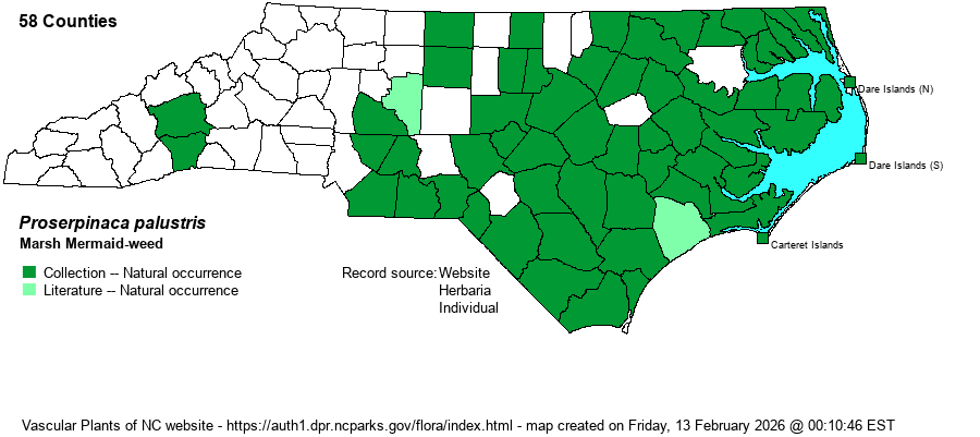 | Proserpinaca palustris | > | Proserpinaca palustris var. crebra | Flora of West Virginia | |