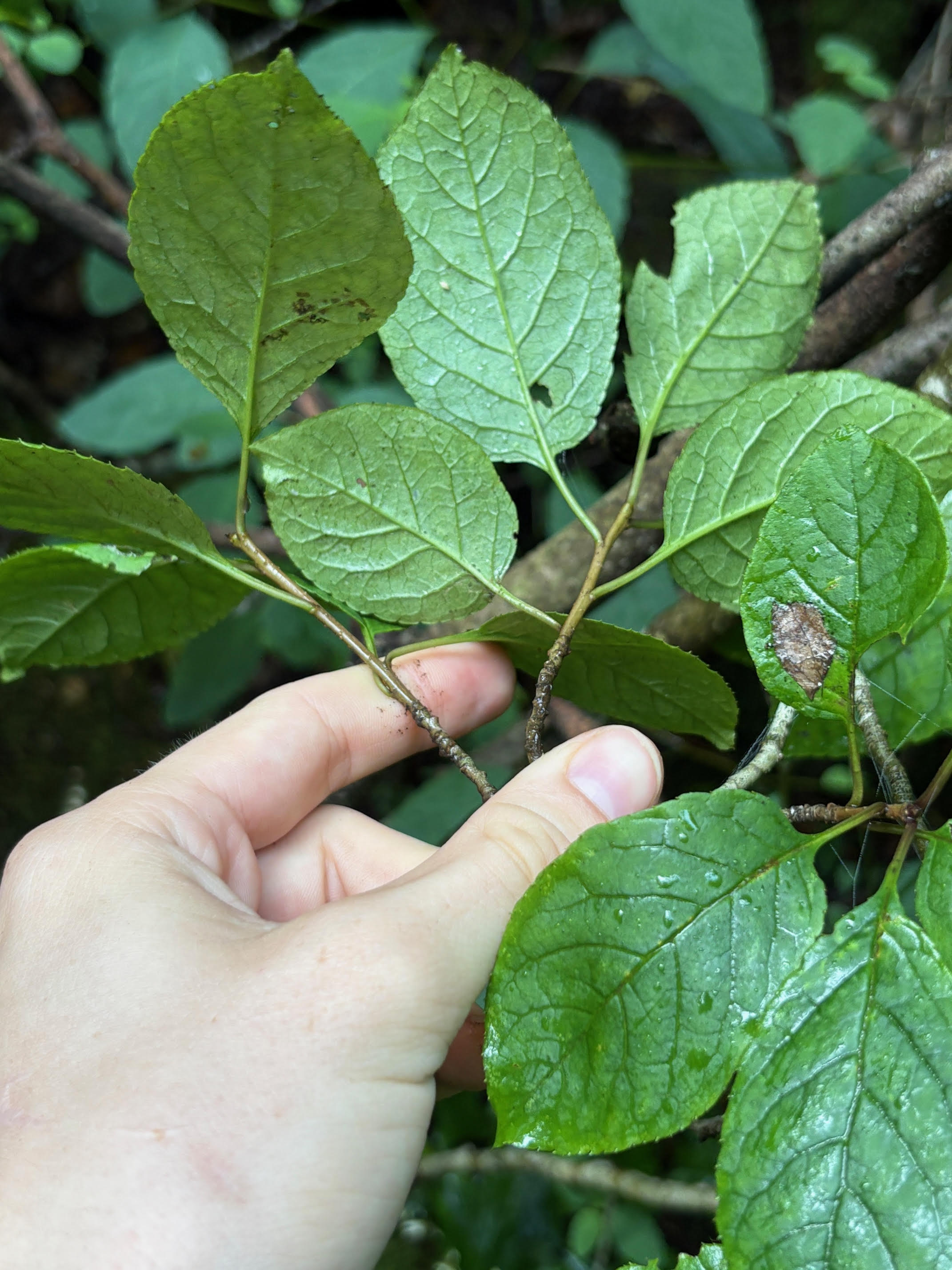 | Identification | This is a deciduous shrub that grows to an average height of 8-10 feet tall. It looks quite a bit like the much more common I. ambigua and I. verticillata, in that the alternate leaves are ovate to elliptic, finely serrated, and have an acuminate tip, growing to about 3 inches long. It must be identified by the long petioles (“stalks”) to the fruits; these are around 1/2-1-inch long and are easily seen in summer, well before the fruits are fully ripened in fall. The other similar shrubs have fruiting stalks less than 1/3-inch long (i.e., less than 10 mm). Few people are likely to come across this species in NC unless they visit known sites, as high elevation boggy, peaty sites are limited, and most such sites have probably been surveyed for this species. | |