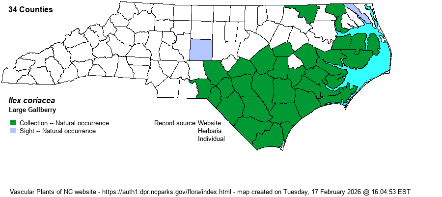 | Habitat | This is one of the classic pocosin species, found only in strongly acidic wetlands associated with pine stands, especially with Pond Pine (Pinus serotina). It is a dominant species in sandhill seepage pocosins, as well as in in Pond Pine Pocosins, blackwater river swamps, and various bay forests. It can also occur in the middle of peat-based Carolina bays far from tree cover. |