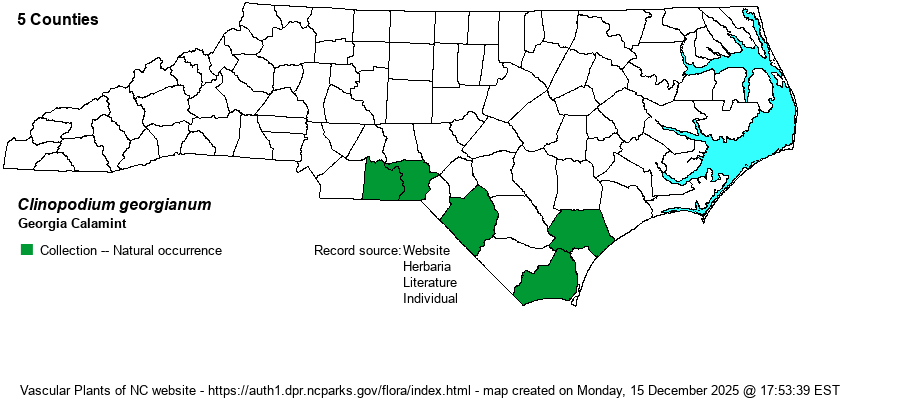 | Taxonomic Comments | This plant has been moved around from one genus to another several times in the past 50 or more years, in a very confusing manner. RAB (1968) had it listed as Satureja georgiana. Other references listed it as Calamintha georgiana. Recently, it has been moved to the large genus Clinopodium, as Clinopodium georgianum.