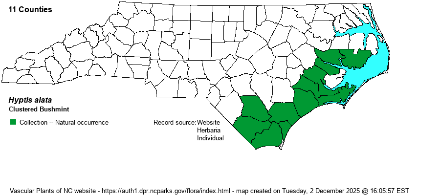 | Taxonomic Comments | Weakley (2018) indicates that the nominate variety -- Hyptis alata var. alata -- is the one found in the state.
