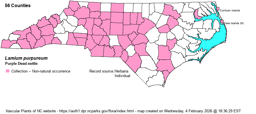 | Distribution | Mostly in the Piedmont and Mountains; scattered in the Coastal Plain.