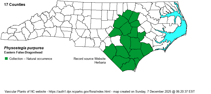 | Distribution | Present in the central and southern portions of the Coastal Plain, and adjacent eastern edge of the Piedmont (Franklin, Nash, and Wake counties). It is absent from the northeastern half of the province (and in VA), with no records northeast of Nash, Wilson, Lenoir, and Onslow counties. Also, it is absent from the Sandhills proper.