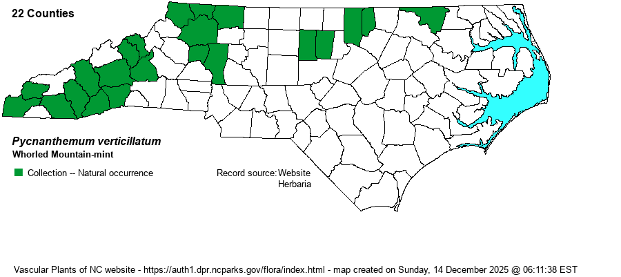 | Abundance | Uncommon to infrequent in the Mountains, and rare in the northern Piedmont, south to Northampton, Orange, and Iredell counties. Exact details of abundance are somewhat unsettled owing to confusion with P. torreyi. | |