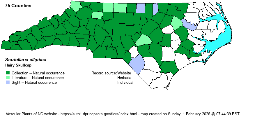 | Taxonomic Comments | Weakley (2018) lists two varieties as occurring in the state. The nominate one -- S. elliptica var. elliptica --is numerous across most of the state, whereas var. hirsuta is less numerous and mostly found in the mountains and Piedmont.
