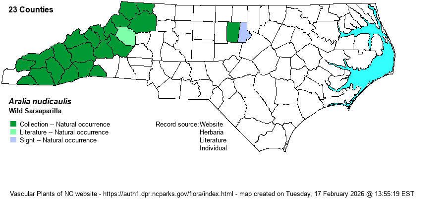 | Distribution | Throughout the Mountains, and possibly the upper reaches of the Piedmont; disjunct to a few sites in the eastern Piedmont (Orange and Durham counties). As the species occurs widely over the VA Piedmont, more records for the northern Piedmont of NC are to be expected.