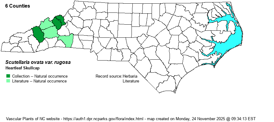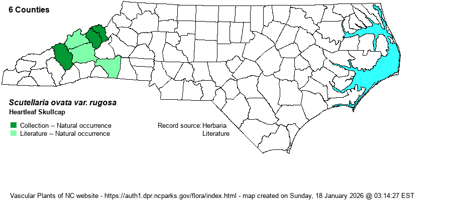 | Distribution | A few scattered records in the mountains and foothills. Poorly known range, owing to confusion with other varieties of this species. NCU has collections from Haywood, Mitchell, and Yancey counties, and the NCNHP database contains records for three additional counties. However, Weakley's NC Flora (2022) does not show it as occurring in NC, though this seems to have been an oversight, as it is listed in his SE Flora (Weakley 2022a).