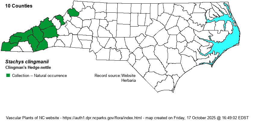 Distribution | Limited to the Mountains, ranging north to Watauga County and south to the GA border; found mainly at high elevations. The Madison County record (USDA) is not supported by a specimen at SERNEC.