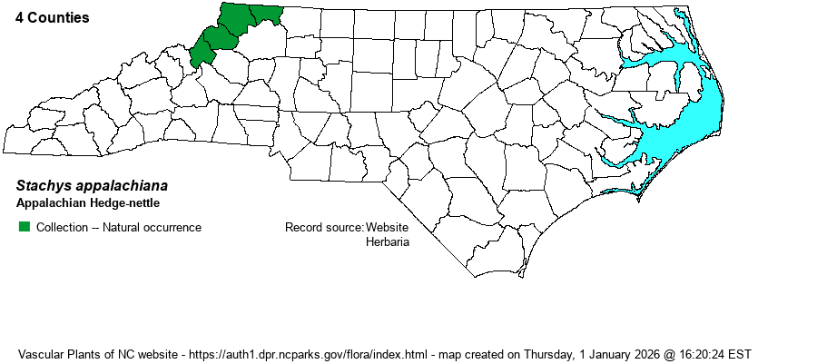 | Distribution | Limited to the northwestern corner of the state, i.e., the northern Mountains - Alleghany, Ashe, Watauga, and Avery counties.