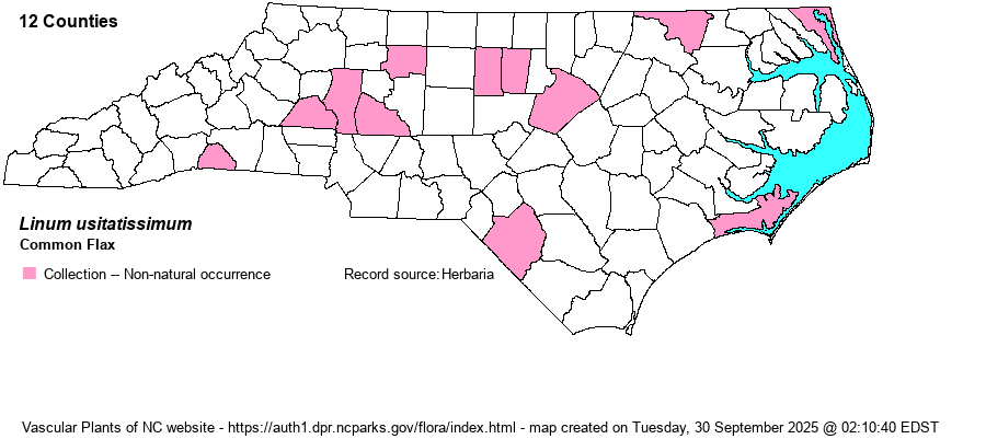 Abundance | Apparently rare, and recent collections are very few. This is the flax of commerce. | |