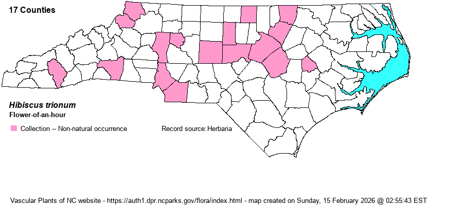| Distribution | Scattered from the Mountains to Greene County in the Coastal Plain; most widespread in the Piedmont.
