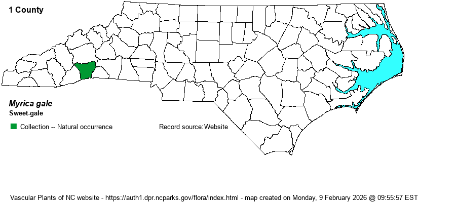| Taxonomic Comments | A few decades ago (e.g., RAB 1968), it was generally known as Gale palustris. Interestingly, it has since been moved into the genus that formerly held the bayberries and waxmyrtles (Myrica), but these shrubs have since been moved into Morella.