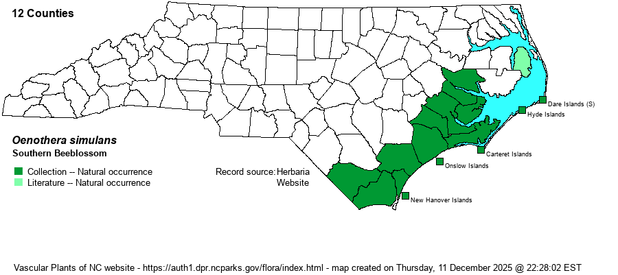 | Taxonomic Comments | This species was long known as Gaura angustifolia for many decades, until moved to Oenothera simulans.