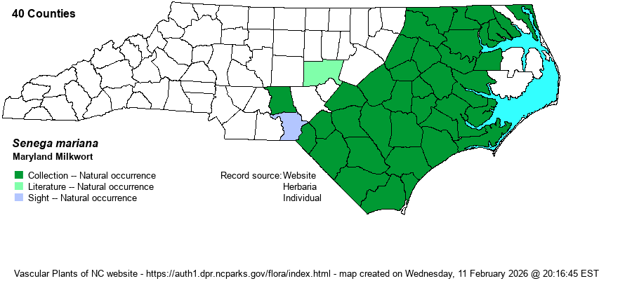 | Taxonomic Comments | All of the former Polygala species in NC have now been moved to the genus Senega in 2023. | |