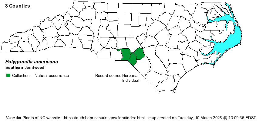 | Taxonomic Comments | A few recent authors have noted the genetic similarity of Polygonella to Polygonum and have lumped the two. Because the two can be easily told apart in the field, taxon editors, including Weakley (2018), prefer to recognize both genera. | |