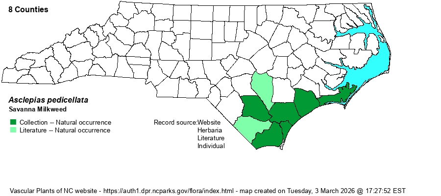 | Other Common Name(s) | Stalked Milkweed. Most references spell the common name as Savannah Milkweed. Assuming this first name is not referring to the city in Georgia, this website, as well as most botanical and ecological references, spell the natural community/habitat as "savanna". | |