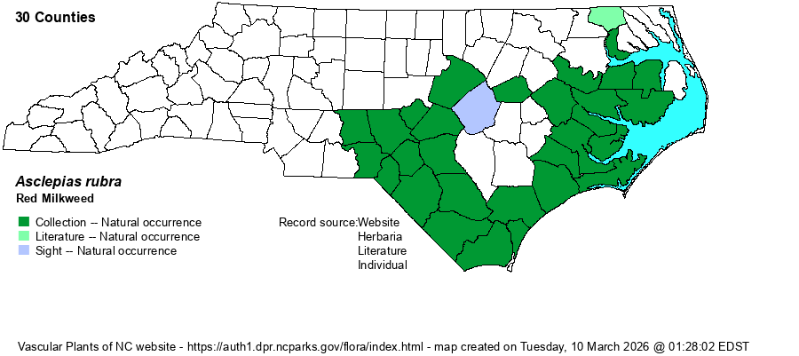 | Other Common Name(s) | As mentioned in Identification, Red Milkweed is a very poor name, as the flowers are rosy-colored to dull purple. However, this is the long established name, and other common names such as Purple Savanna Milkweed have yet to gain traction. | |