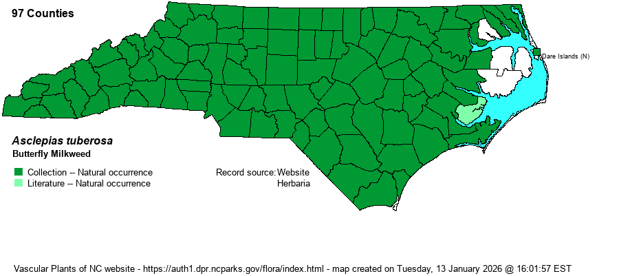 | Taxonomic Comments | There are two varieties of the species in the state; var. tuberosa occurs essentially statewide, whereas var. rolfsii is essentially limited to the Sandhills region.