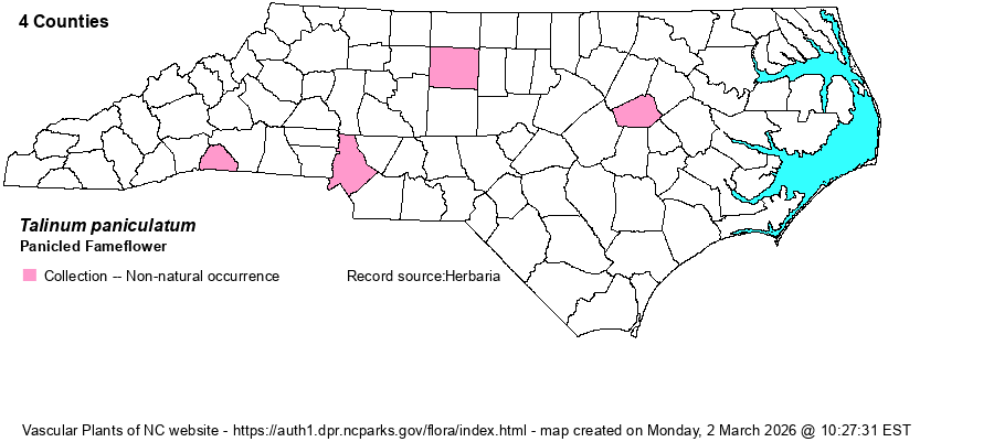 | Taxonomic Comments | The two native species of NC Phemeranthus species were formerly included within Talinum.
