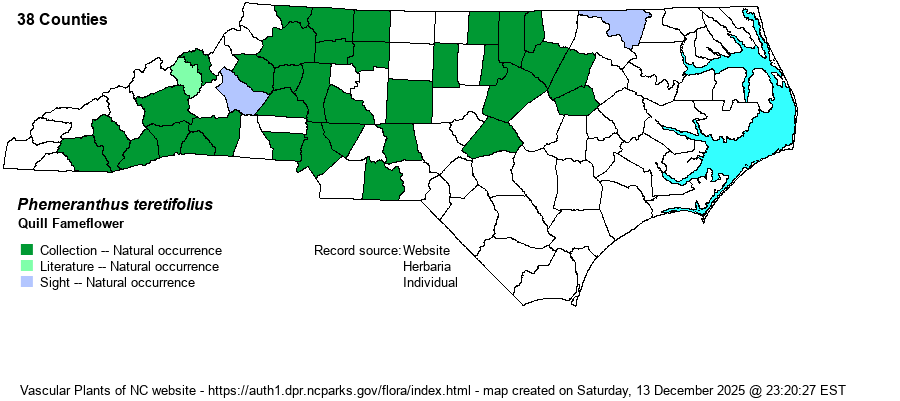 | Taxonomic Comments | Most older references named the species as Talinum teretifolium, but most newer ones have it moved into Phemeranthus.