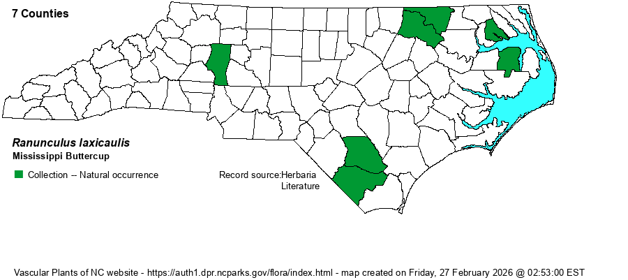 | Abundance | Seemingly very rare to rare, in the upper and middle Coastal Plain, but the abundance is poorly known, as the species has presumably been overlooked as the common R. pusillus or another species, at least when not in bloom. The NCNHP gives it a Watch List status, correctly as W7 (poorly known), but with a State Rank of S2. | |