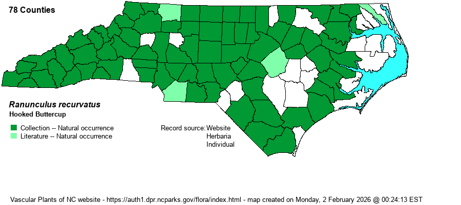| Taxonomic Comments | Weakley has varieties for this species, with the nominate one -- R. recurvatus var. recurvatus -- being the only one in NC.