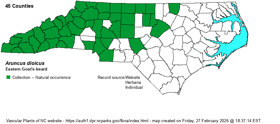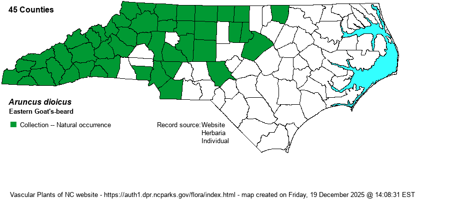 | Taxonomic Comments | Weakley (2018) lists the nominate variety -- A. dioicus var. dioicus -- as the one occurring in NC.