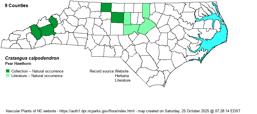 | Taxonomic Comments | This is one of the few NC hawthorns that were included as a good species in RAB (1968). A few old references do list several varieties for it.