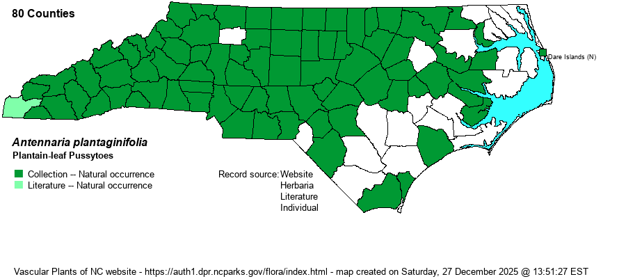 | Antennaria plantaginifolia | > | Antennaria caroliniana | Small (1933, 1938) | |