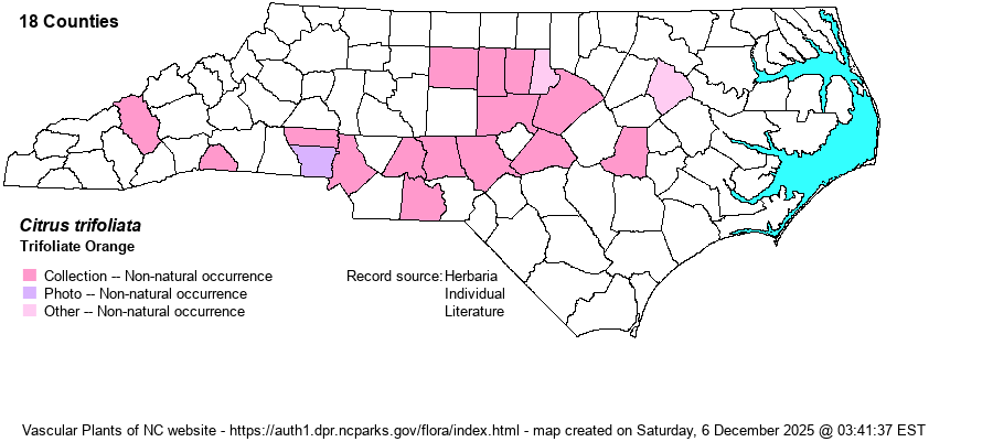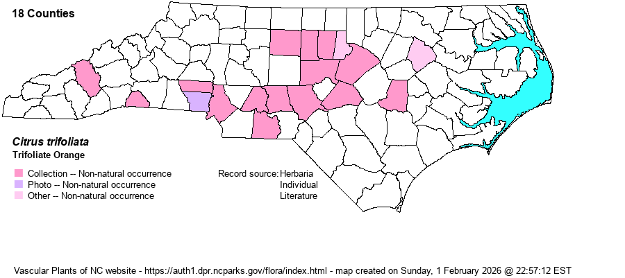 | Distribution | Piedmont and low Mountains; also Cliffs of the Neuse State Park in Wayne County. Weakley (2018) says it is becoming common in suburban areas.