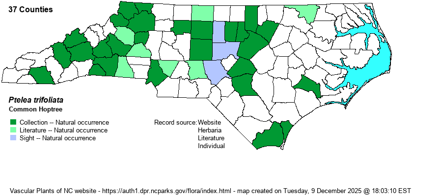 | Taxonomic Comments | Some references split out this species into a handful of varieties or subspecies, though NatureServe does not. Weakley (2018) considers the nominate variety – P. trifoliata var. trifoliata – the primary one found in the state, whereas P. trifoliata var. mollis is apparently rare in all three provinces.