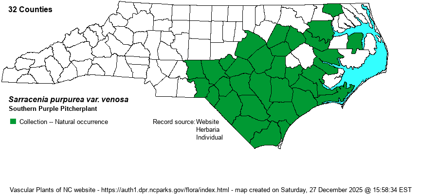 | Sarracenia purpurea var. venosa | < | Sarracenia purpurea | Flora of Virginia | |