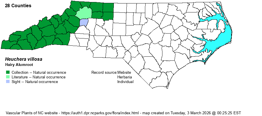 | Heuchera villosa | < | Heuchera villosa | Radford, Ahles, and Bell (1968) | |