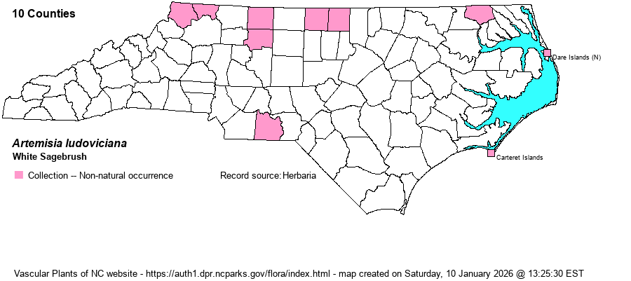 | Artemisia ludoviciana | = | Artemisia ludoviciana var. ludoviciana | Vascular Flora of the Southeastern States (Cronquist 1980, Isely 1990) | |