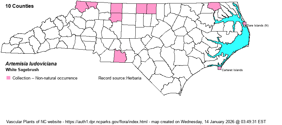 | Artemisia ludoviciana | > | Artemisia ludoviciana | Radford, Ahles, and Bell (1968) | |