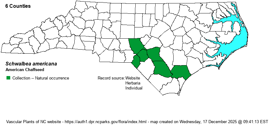 | Other Common Name(s) | Chaffseed. Though this is the only Schwalbea species, most references tack on the modifier "American", though this seems unnecessary -- unless there is some other plant in the world also with a name that uses "Chaffseed". | |