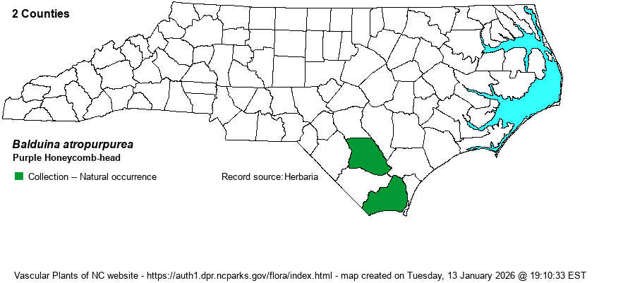 | Distribution | Southern Coastal Plain. Known only from Bladen (a powerline) and Brunswick (Green Swamp) counties. Neither population has been seen for over a decade, despite some searching.