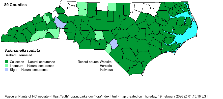 Weakley (2020) places Valerianella and Valeriana into family Valerianaceae, but without taxonomic justification. The papers he cites are a mixed bag without consensus. We will await further developments. | |