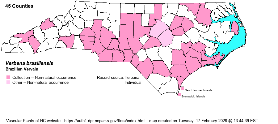 | Distribution | Across the state, although scarce in the Mountains. First collected in 1897 on ballast at Wilmington, New Hanover County. Certainly present in most counties in the state now, except in the Mountains.