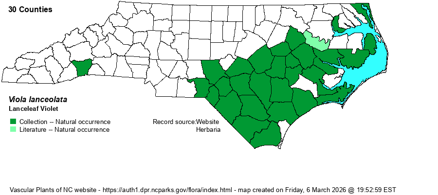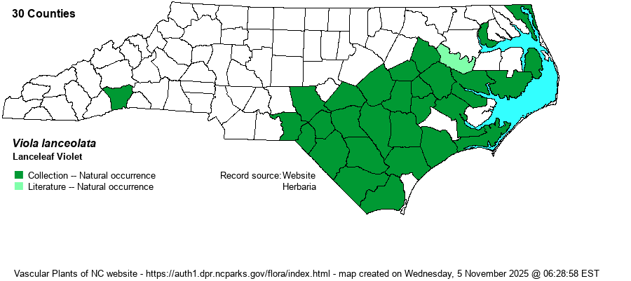 | Taxonomic Comments | Weakley (2020) has split out V. vittata from this species; most references include that taxon as a variety or subsumed completely within V. lanceolata.